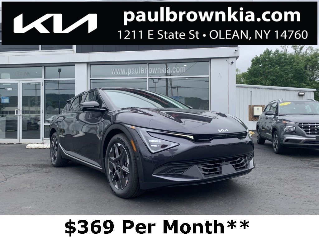 Our For The People Pricing means ZERO price increases at Paul Brown. $11,200 off MSRP! 2025 Kia EV6 Light 4D Sport Utility Panthera Metal Electric Motor 1-Speed Automatic AWD ** $369 Per month 24 month lease 20,000 total miles at lease end. $3,468 total down including first payment. NYS Tax and fees are included in the payment. Residency restrictions may apply. Must Qualify through KMF. Kia Lease Loyalty or Lease conquest rebate needed., Apple CarPlay & Android Auto, Emergency communication system, Front dual zone A/C, Fully automatic headlights, Heated door mirrors, Heated rear seats, Heated steering wheel, Low tire pressure warning, Power door mirrors, Power driver seat, Rear window defroster. 117/95 City/Highway MPG Final Price may require vehicle trade in and Paul Brown trade assistance , see website for details. For a hassle free purchase experience, reach out to the Sales team at Paul Brown Chevy at (716) 244-6077. Conveniently located on Route 16 North, Olean NY 14760. We are worth the trip! Travel from over 75 miles away and don't purchase we will supply you with $25 gas card! Paul Brown Chevy, A Dealer For the People! Price includes: $9000 - Kia Customer Cash. Exp. 11/03/2025