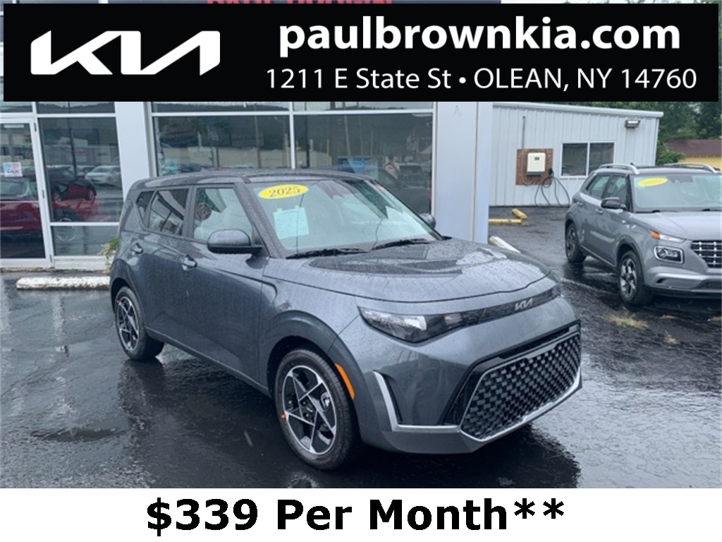 Our For The People Pricing means ZERO price increases at Paul Brown. $1,888 off MSRP! 2025 Kia Soul EX 4D Hatchback Gravity Gray 2.0L I4 DOHC CVT FWD ** $339 Per month 36 month lease 30,000 total miles at lease end. $3,139 total down including first payment. NYS Tax and fees are included in the payment. Residency restrictions may apply. Must Qualify through KMF. No Security Deposit Required, Apple CarPlay & Android Auto, Emergency communication system, Exterior Parking Camera Rear, Front dual zone A/C, Fully automatic headlights, Heated door mirrors, Heated front seats, Low tire pressure warning, Navigation System/GPS/Navi, Power door mirrors, Power moonroof, Rear window defroster, Remote keyless entry, Woven & Tricot Premium Cloth Seat Trim. 27/33 City/Highway MPG Final Price may require vehicle trade in and Paul Brown trade assistance , see website for details. For a hassle free purchase experience, reach out to the Sales team at Paul Brown Chevy at (716) 244-6077. Conveniently located on Route 16 North, Olean NY 14760. We are worth the trip! Travel from over 75 miles away and don't purchase we will supply you with $25 gas card! Paul Brown Chevy, A Dealer For the People! Price includes: $500 - Kia Customer Cash. Exp. 11/03/2025
