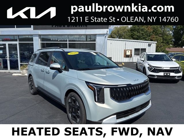 Our For The People Pricing means ZERO price increases at Paul Brown. $4,501 off MSRP! 2026 Kia Carnival EX 4D Passenger Van Ivory Silver V6 8-Speed Automatic FWD Apple CarPlay & Android Auto, Artificial Leather Seat Trim, Emergency communication system, Exterior Parking Camera Rear, Front dual zone A/C, Fully automatic headlights, Heated door mirrors, Heated front seats, Low tire pressure warning, Memory seat, Navigation System/GPS/Navi, Power door mirrors, Power driver seat, Power Liftgate, Power passenger seat, Rear air conditioning, Rear window defroster, Wheels: 7.5J x 19" Machine-Finished Alloy. 18/26 City/Highway MPG Final Price may require vehicle trade in and Paul Brown trade assistance, see website for details. For a hassle free purchase experience, reach out to the Sales team at Paul Brown Motors at (585-376-5057). Conveniently located on E State Street, Olean NY 14760. We are worth the trip! Travel from over 75 miles away and don't purchase we will supply you with $25 gas card! Paul Brown Chevy, A Dealer For the People! Price includes: $1500 - KFA Dealer Choice Program: $1500 discount and 5.25% APR for 36 months. $30.08 per $1000 financed. Available to well qualified buyers who finance through Kia Finance America. 506. Exp. 03/31/2026