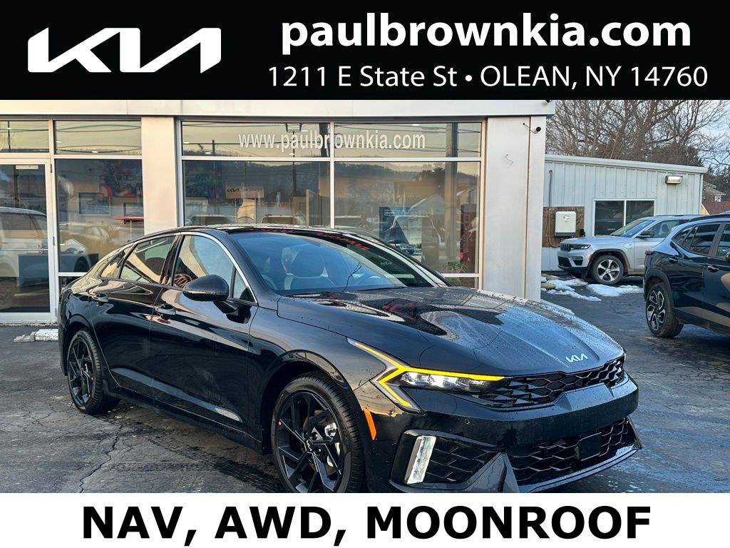 $3,096 off MSRP! We want your trade, ask about Paul Brown Trade discount available to all customers with a trade in! 2026 Kia K5 GT-Line 4D Sedan Aurora Black Pearl I4 8-Speed Automatic 24/33 City/Highway MPG AWD Active Sound Design, Apple CarPlay & Android Auto, Bose Premium Audio, Emergency communication system: Kia Connect (includes 1 year free trial), Front dual zone A/C, Fully automatic headlights, GT-Line Premium Package, Heated door mirrors, Heated front seats, Heated steering wheel, LED Interior Lighting, Low tire pressure warning, Navigation System/GPS/Navi, Panoramic Sunroof, Power door mirrors, Rear window defroster, Wheels: 18" x 7.5J Unique Gloss Black Alloy. For a hassle free purchase experience, reach out to the Sales team at Paul Brown Motors at (585) 376-5057. Conveniently located on Route 16 North, Olean NY 14760. We are worth the trip! Travel from over 75 miles away and don't purchase we will supply you with $25 gas card! Paul Brown Motors, A Dealer For the People! Price includes: $1250 - KFA Dealer Choice Program: $1250 discount and 5.25% APR for 36 months. $30.08 per $1000 financed. Available to well qualified buyers who finance through Kia Finance America. 506. Exp. 05/04/2026