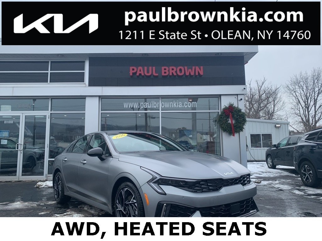 Our For The People Pricing means ZERO price increases at Paul Brown. $2,752 off MSRP! 2026 Kia K5 GT-Line 4D Sedan Steel Matte Gray I4 8-Speed Automatic AWD Emergency communication system: Kia Connect (includes 1 year free trial), Front dual zone A/C, Fully automatic headlights, Heated door mirrors, Heated front seats, Heated steering wheel, Low tire pressure warning, Navigation System/GPS/Navi, Power door mirrors, Power driver seat, Rear window defroster, Wheels: 18" x 7.5J Gloss Black Machined Finish Alloy. Final Price may require vehicle trade in and Paul Brown trade assistance, see website for details. For a hassle free purchase experience, reach out to the Sales team at Paul Brown Motors at (585-376-5057). Conveniently located on E State Street, Olean NY 14760. We are worth the trip! Travel from over 75 miles away and don't purchase we will supply you with $25 gas card! Paul Brown Chevy, A Dealer For the People! Price includes: $1000 - KFA Dealer Choice Program: $1000 discount and 5.25% APR for 36 months. $30.08 per $1000 financed. Available to well qualified buyers who finance through Kia Finance America. 506. Exp. 03/02/2026
