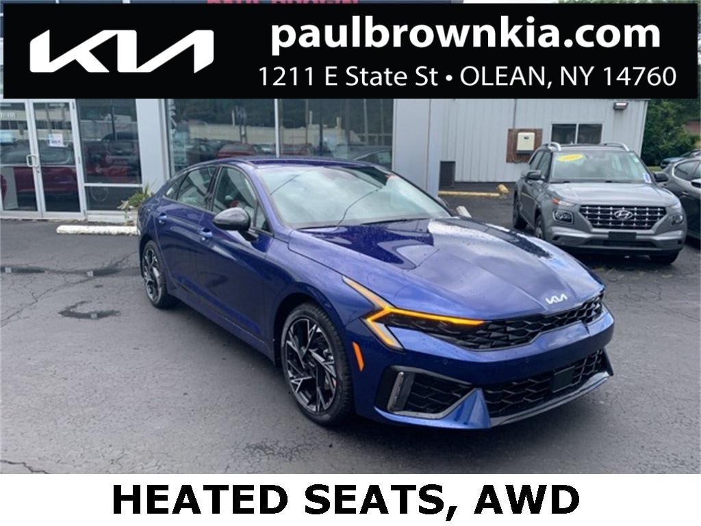 Our For The People Pricing means ZERO price increases at Paul Brown. $3,411 off MSRP! 2026 Kia K5 GT-Line 4D Sedan Yacht Blue I4 8-Speed Automatic AWD ** $329 Per month 36 month lease 30,000 total miles at lease end. $2,969 total down including first payment. NYS Tax and fees are included in the payment. Residency restrictions may apply. Must Qualify through KMF. No Security Deposit Required, Emergency communication system: Kia Connect (includes 1 year free trial), Front dual zone A/C, Fully automatic headlights, Heated door mirrors, Heated front seats, Heated steering wheel, Low tire pressure warning, Navigation System/GPS/Navi, Power door mirrors, Power driver seat, Rear window defroster, Wheels: 18" x 7.5J Gloss Black Machined Finish Alloy. Final Price may require vehicle trade in and Paul Brown trade assistance, see website for details. For a hassle free purchase experience, reach out to the Sales team at Paul Brown Motors at (585-376-5057). Conveniently located on E State Street, Olean NY 14760. We are worth the trip! Travel from over 75 miles away and don't purchase we will supply you with $25 gas card! Paul Brown Chevy, A Dealer For the People! Price includes: $1000 - KFA Dealer Choice Program: $1000 discount and 5.25% APR for 36 months. $30.08 per $1000 financed. Available to well qualified buyers who finance through Kia Finance America. 506. Exp. 03/02/2026