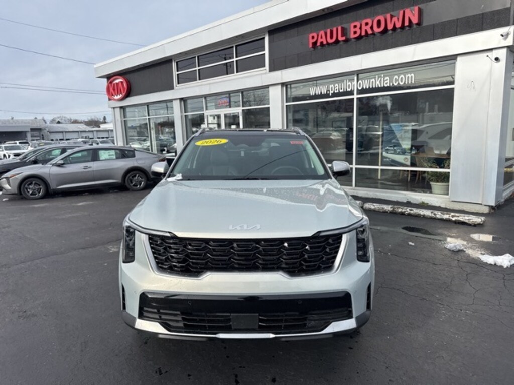 Our For The People Pricing means ZERO price increases at Paul Brown. $3,316 off MSRP! 2026 Kia Sorento S 4D Sport Utility Ivory Silver 2.5L I4 DGI DOHC 16V LEV3-SULEV30 191hp 8-Speed Automatic AWD 3rd row seats: split-bench, Apple CarPlay & Android Auto, Emergency communication system: 911 Connect, Exterior Parking Camera Rear, Front dual zone A/C, Fully automatic headlights, Heated door mirrors, Heated front seats, Low tire pressure warning, Power door mirrors, Power driver seat, Rear window defroster, SynTex Artificial Leather Seat Trim, Wheels: 18" Gloss Black Alloy. 23/28 City/Highway MPG Final Price may require vehicle trade in and Paul Brown trade assistance, see website for details. For a hassle free purchase experience, reach out to the Sales team at Paul Brown Chevy at (716) 244-6077. Conveniently located on Route 16 North, Olean NY 14760. We are worth the trip! Travel from over 75 miles away and don't purchase we will supply you with $25 gas card! Paul Brown Chevy, A Dealer For the People! Price includes: $2000 - KFA Dealer Choice Program: $2000 discount and 5.25% APR for 36 months. $30.08 per $1000 financed. Available to well qualified buyers who finance through Kia Finance America. 506. Exp. 01/02/2026