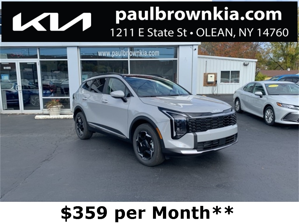 Our For The People Pricing means ZERO price increases at Paul Brown. $2,612 off MSRP! 2026 Kia Sportage EX 4D Sport Utility Wolf Gray I4 8-Speed Automatic AWD **$359 Per month 36 month lease 30,000 total miles at lease end. Only $1,500 plus tax, DMV and first payment DAS, 18" x 7.5J Alloy Wheels, Emergency communication system: Kia Connect (includes 1 year free trial), Front dual zone A/C, Fully automatic headlights, Heated door mirrors, Heated front seats, Low tire pressure warning, Power door mirrors, Power driver seat, Power Liftgate, Rain sensing wipers, Rear window defroster, SynTex Leatherette Seat Trim. 23/26 City/Highway MPG Final Price may require vehicle trade in and Paul Brown trade assistance, see website for details. For a hassle free purchase experience, reach out to the Sales team at Paul Brown Chevy at (716) 244-6077. Conveniently located on Route 16 North, Olean NY 14760. We are worth the trip! Travel from over 75 miles away and don't purchase we will supply you with $25 gas card! Paul Brown Chevy, A Dealer For the People! Price includes: $1000 - KFA Dealer Choice Program: $1000 discount and 5.25% APR for 36 months. $30.08 per $1000 financed. Available to well qualified buyers who finance through Kia Finance America. 506. Exp. 12/01/2025