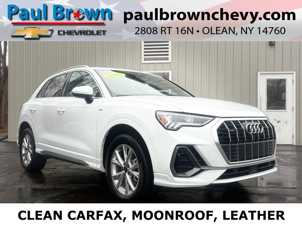 Priced below KBB Fair Purchase Price! CARFAX One-Owner. Clean CARFAX. 2025 Audi Q3 Premium S Line quattro 4D Sport Utility Black 2.0L 4-Cylinder TFSI 8-Speed Automatic with Tiptronic quattro Audi smartphone interface (Apple CarPlay/Android Auto), Emergency communication system: Audi connect CARE, Exterior Parking Camera Rear, Front dual zone A/C, Fully automatic headlights, Heated door mirrors, Heated front seats, Leather Seating Surfaces, Low tire pressure warning, Power door mirrors, Power driver seat, Power Liftgate, Power moonroof: Panoramic, Power passenger seat, Rain sensing wipers, Rear air conditioning, Rear window defroster, Wheels: 18 5-V-Spoke-S Design. 20/28 City/Highway MPG Final Price may require vehicle trade in and Paul Brown trade assistance , see website for details. For a hassle free purchase experience, reach out to the Sales team at Paul Brown Chevy at (716) 244-6077. Conveniently located on Route 16 North, Olean NY 14760. We are worth the trip! Travel from over 75 miles away and don't purchase we will supply you with $25 gas card! Paul Brown Chevy, A Dealer For the People!