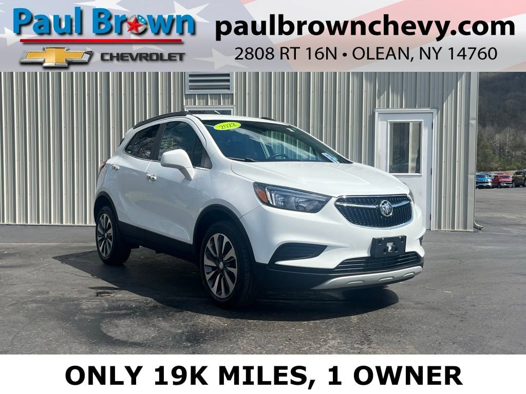 Priced below KBB Fair Purchase Price! CARFAX One-Owner. We monitor over 20,000 websites everyday to ensure our For the People Pricing means you get the best price every time. We want your trade, ask about Paul Brown Trade discount available to all customers with a trade in! 2022 Buick Encore Preferred Odometer is 3477 miles below market average! 4D Sport Utility Summit White 1.4L ECOTEC Turbo VVT DOHC 4-Cyl SIDI 6-Speed Automatic Electronic with Overdrive 23/30 City/Highway MPG AWD 120-Volt Power Outlet, 18 Aluminum Wheels, 6-Speaker Audio System, Air Conditioning, Apple CarPlay/Android Auto, Emergency communication system: OnStar and Buick connected services capable, Exterior Parking Camera Rear, Fully automatic headlights, Heated door mirrors, Low tire pressure warning, Power door mirrors, Power driver seat, Radio: 7 Diagonal Buick Infotainment System, Rear window defroster, Side Blind Zone Alert, SiriusXM Radio. For a hassle free purchase experience, reach out to the Sales team at Paul Brown Chevy at (716) 244-6077. Conveniently located on Route 16 North, Olean NY 14760. We are worth the trip! Travel from over 75 miles away and don't purchase we will supply you with $25 gas card! Paul Brown Motors, A Dealer For the People!