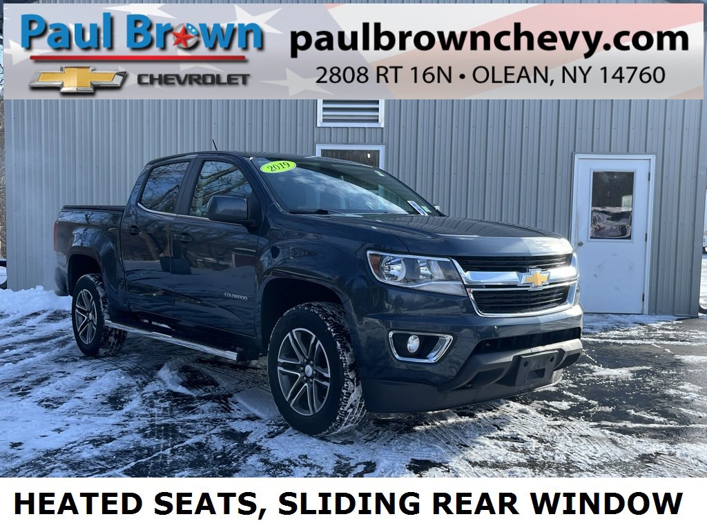 CARFAX One-Owner. 2019 Chevrolet Colorado LT 4D Crew Cab Shadow Gray Metallic V6 8-Speed Automatic 4WD 4-Way Power Front Passenger Seat Adjuster, Air Conditioning, Apple CarPlay, Cloth Seat Trim, Driver 6-Way Power Seat Adjuster, Exterior Parking Camera Rear, EZ-Lift & Lower Tailgate, Heated Driver & Front Passenger Seats, Heated Steering Wheel, Low tire pressure warning, Manual Rear-Sliding Window, Power door mirrors, Power Driver Lumbar Control Seat Adjuster, Power Passenger Lumbar Control Seat Adjuster, Premium audio system: Chevrolet Infotainment System, Rear-Window Electric Defogger, Remote keyless entry, SiriusXM Radio, Tow/Haul Mode, Wheels: 18 x 8.5 Dark Argent Metallic Cast Alloy. Final Price may require vehicle trade in and Paul Brown trade assistance , see website for details. For a hassle free purchase experience, reach out to the Sales team at Paul Brown Chevy at (716) 244-6077. Conveniently located on Route 16 North, Olean NY 14760. We are worth the trip! Travel from over 75 miles away and don't purchase we will supply you with $25 gas card! Paul Brown Chevy, A Dealer For the People! Awards: