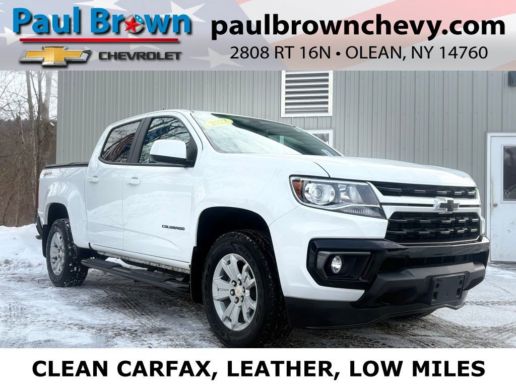 Priced below KBB Fair Purchase Price! CARFAX One-Owner. Clean CARFAX. 2022 Chevrolet Colorado LT 4D Crew Cab Summit White V6 8-Speed Automatic 4WD Odometer is 15429 miles below market average! Air Conditioning, Apple CarPlay/Android Auto, Driver 6-Way Power Seat Adjuster, Front Fog Lamps, Fully automatic headlights, Heated Driver & Front Passenger Seats, Heated Steering Wheel, Heavy-Duty Trailering Package, Leather-Appointed Seat Trim, Low tire pressure warning, LT Convenience Package, Manual Rear-Sliding Window, Outside Heated Power-Adjustable Body-Color Mirrors, Power Driver Lumbar Control Seat Adjuster, Premium audio system: Chevrolet Infotainment 3, Rear-Window Electric Defogger, Remote Vehicle Starter System, Wheels: 17 x 8 Blade Silver Metallic Cast Alloy. Final Price may require vehicle trade in and Paul Brown trade assistance , see website for details. For a hassle free purchase experience, reach out to the Sales team at Paul Brown Chevy at (716) 244-6077. Conveniently located on Route 16 North, Olean NY 14760. We are worth the trip! Travel from over 75 miles away and don't purchase we will supply you with $25 gas card! Paul Brown Chevy, A Dealer For the People!