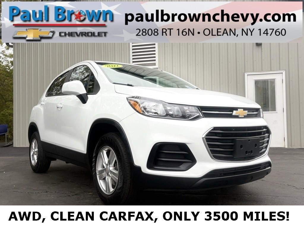 CARFAX One-Owner. Clean CARFAX. 2022 Chevrolet Trax LS 4D Sport Utility Summit White Turbo 1.4L VVT DOHC 4-Cylinder DI SIDI 6-Speed Automatic AWD Odometer is 19004 miles below market average! 2 USB Ports w/Auxiliary Input Jack, Air Conditioning, Apple CarPlay/Android Auto, Cloth Seat Trim, Deep-Tinted Rear Glass Windows & Liftgate, Electronic Automatic Cruise Control, Emergency communication system: OnStar and Chevrolet connected services capable, Exterior Parking Camera Rear, Fully automatic headlights, Low tire pressure warning, Power door mirrors, Premium audio system: Chevrolet Infotainment 3, Rear window defroster, Remote keyless entry, SiriusXM Radio, Tint & Cruise Package. 23/30 City/Highway MPG Final Price may require vehicle trade in and Paul Brown trade assistance , see website for details. For a hassle free purchase experience, reach out to the Sales team at Paul Brown Chevy at (716) 244-6077. Conveniently located on Route 16 North, Olean NY 14760. We are worth the trip! Travel from over 75 miles away and don't purchase we will supply you with $25 gas card! Paul Brown Chevy, A Dealer For the People!