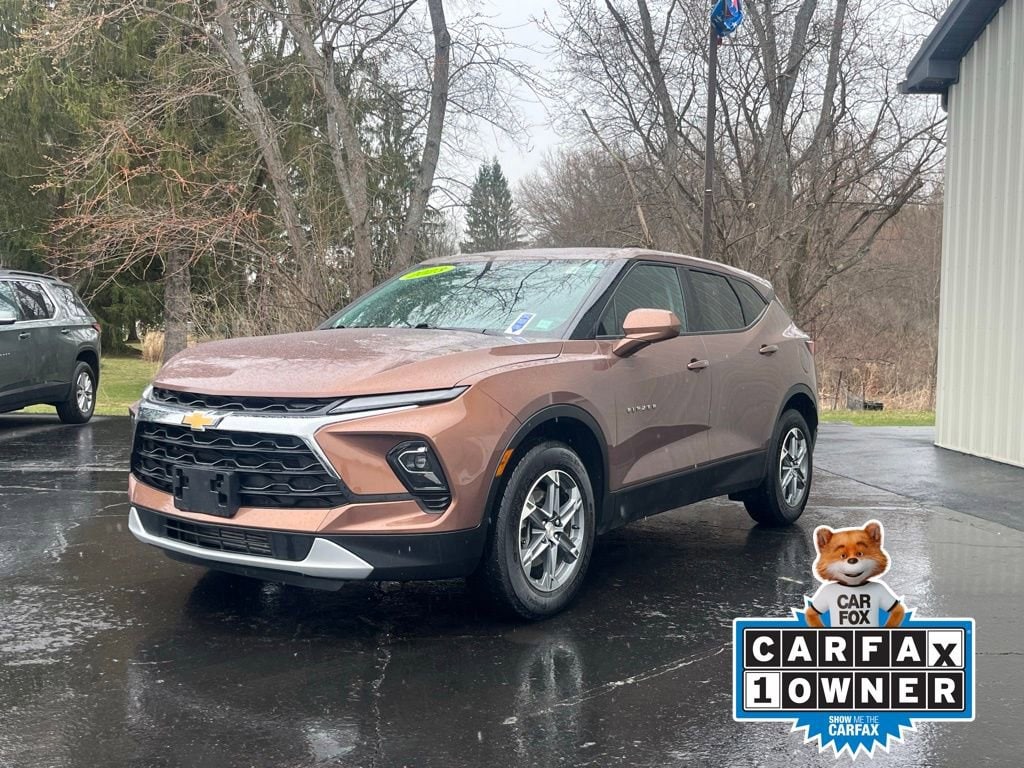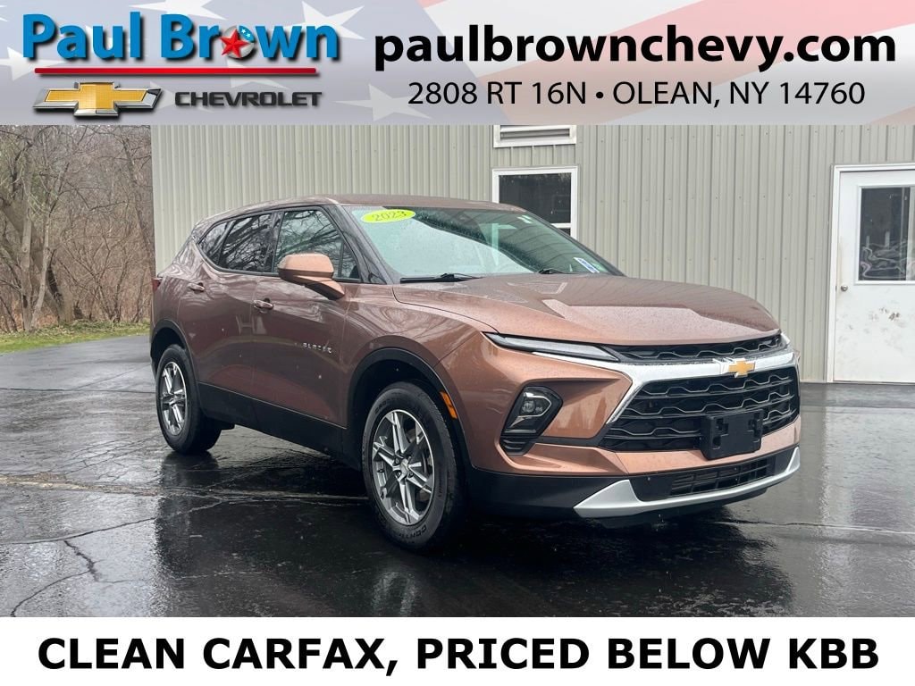 Priced below KBB Fair Purchase Price! CARFAX One-Owner. Clean CARFAX. 2023 Chevrolet Blazer LT 4D Sport Utility Copper Bronze Metallic 2.0L Turbocharged 9-Speed Automatic with Overdrive AWD Odometer is 7197 miles below market average! 8-Way Power Driver Seat Adjuster, Apple CarPlay/Android Auto, Emergency communication system: OnStar and Chevrolet connected services capable, Front dual zone A/C, Fully automatic headlights, Heated door mirrors, Low tire pressure warning, Power door mirrors, Rear window defroster, SiriusXM w/360L, Wheels: 18 Grazen Metallic Aluminum. 22/27 City/Highway MPG Final Price may require vehicle trade in and Paul Brown trade assistance , see website for details. For a hassle free purchase experience, reach out to the Sales team at Paul Brown Chevy at (716) 244-6077. Conveniently located on Route 16 North, Olean NY 14760. We are worth the trip! Travel from over 75 miles away and don't purchase we will supply you with $25 gas card! Paul Brown Chevy, A Dealer For the People!