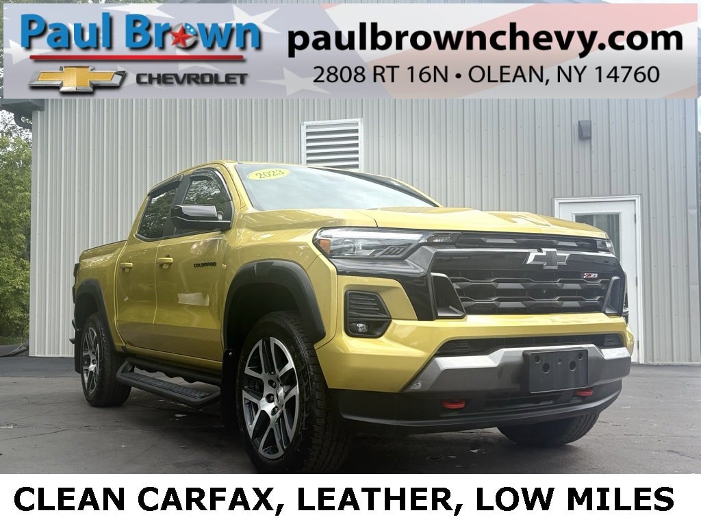 Priced below KBB Fair Purchase Price! CARFAX One-Owner. Clean CARFAX. 2023 Chevrolet Colorado Z71 4D Crew Cab Nitro Yellow Metallic 2.7L Turbo 8-Speed Automatic 4WD 8-Way Power Driver Seat Adjuster, Adaptive Cruise Control, Advanced Trailering Package, Apple CarPlay/Android Auto, Automatic Emergency Braking, Black Spray-On Bedliner w/Chevrolet Logo, Blind Zone Steering Assist, Chevy Safety Assist, Delay-off headlights, Driver & Front Passenger Ventilated Seats, Driver Memory Settings, Driver Seatback Map Pocket, Dual-Zone Automatic Air Conditioning, EZ-Lift & Lower Tailgate, Following Distance Indicator, Forward Collision Alert, Front Pedestrian & Bicyclist Braking, HD Surround Vision, Heated door mirrors, Heated Driver & Front Passenger Seats, Heated Steering Wheel, Heavy-Duty Trailering Package, Integrated Trailer Brake Controller, IntelliBeam Automatic High Beam On/Off, Lane Keep Assist w/Lane Departure Warning, Low tire pressure warning, Navigation System, Off-Road Assist Steps (LPO), Perforated Leather-Appointed Seat Trim, Power door mirrors, Power Driver Lumbar Control Seat Adjuster, Power Sliding Glass w/Manual Shade Sunroof, Rear Center Armrest, Rear Cross Traffic Braking, Rear Park Assist, Rear Pedestrian Alert, Rear window defroster, Remote Vehicle Starter System, Safety Package, SiriusXM Radio, StowFlex Tailgate Storage Compartment, Tilt & Telescoping Steering Column, Trailering App, Wheels: 20 x 9 Dark Android Aluminum, Wireless Charging, Wireless Phone Projection, Z71 Convenience Package II, Z71 Convenience Package III. Final Price may require vehicle trade in and Paul Brown trade assistance , see website for details. For a hassle free purchase experience, reach out to the Sales team at Paul Brown Chevy at (716) 244-6077. Conveniently located on Route 16 North, Olean NY 14760. We are worth the trip! Travel from over 75 miles away and don't purchase we will supply you with $25 gas card! Paul Brown Chevy, A Dealer For the People!
