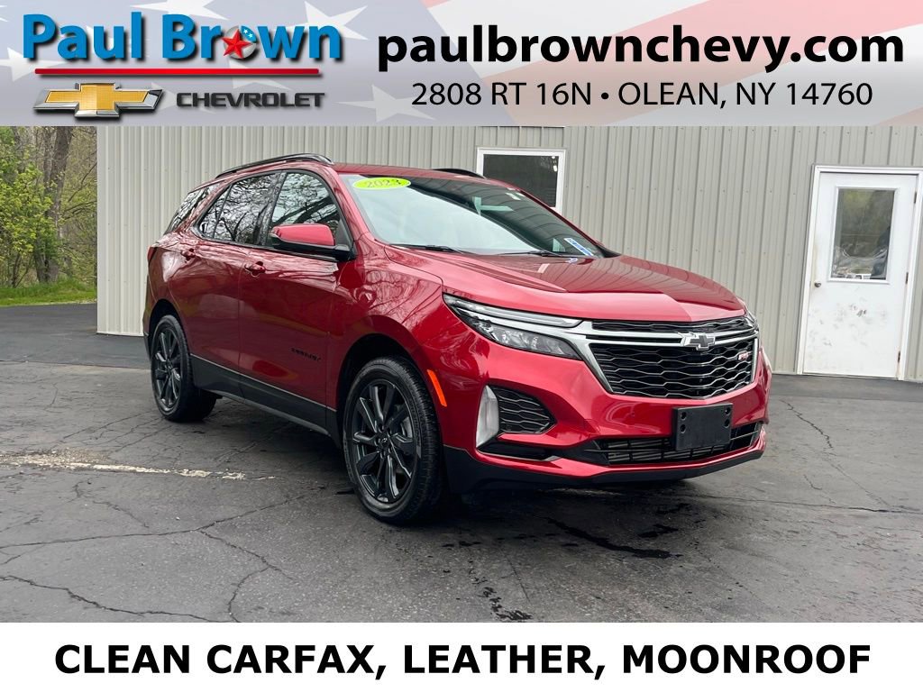 Priced below KBB Fair Purchase Price! CARFAX One-Owner. Clean CARFAX. We monitor over 20,000 websites everyday to ensure our For the People Pricing means you get the best price every time. We want your trade, ask about Paul Brown Trade discount available to all customers with a trade in! 2023 Chevrolet Equinox RS Odometer is 1336 miles below market average! 4D Sport Utility Radiant Red Tintcoat 1.5L DOHC 6-Speed Automatic Electronic with Overdrive 24/30 City/Highway MPG AWD 19 Aluminum Wheels, 2 Rear USB Charging-Only Ports, 2 USB Ports & Auxiliary Input Jack, 2-Way Power Driver Lumbar Control Seat Adjuster, Adaptive Cruise Control, Advanced Safety Package, Bose Premium 7-Speaker Audio System Feature, Driver 8-Way Power Seat Adjuster, Driver Seatback Map Pocket, Emergency communication system: OnStar and Chevrolet connected services capable, Front dual zone A/C, Fully automatic headlights, HD Surround Vision, Heated door mirrors, Heated front seats, Lane Change Alert w/Side Blind Zone Alert, Low tire pressure warning, Outside Heated Power-Adjustable Mirrors, Perforated Leather-Appointed Seat Trim, Power door mirrors, Power Sunroof, Premium audio system: Chevrolet Infotainment 3, Rear window defroster, RS Leather Package, SiriusXM Radio, Wireless Apple CarPlay/Wireless Android Auto. For a hassle free purchase experience, reach out to the Sales team at Paul Brown Chevy at (716) 244-6077. Conveniently located on Route 16 North, Olean NY 14760. We are worth the trip! Travel from over 75 miles away and don't purchase we will supply you with $25 gas card! Paul Brown Motors, A Dealer For the People!