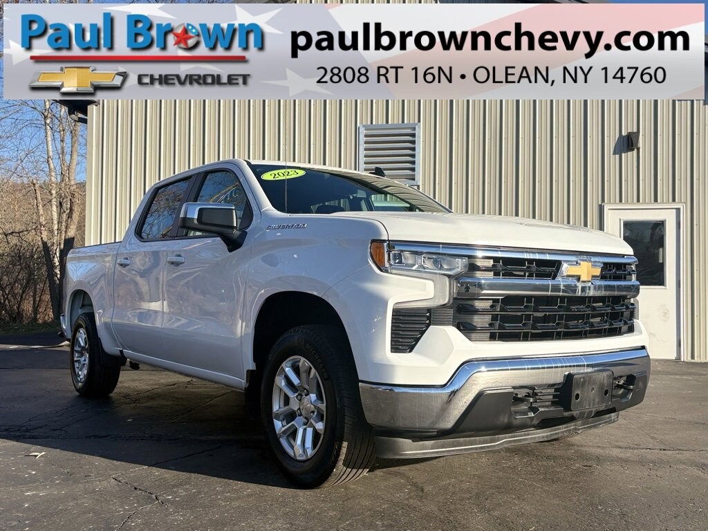 Clean CARFAX. 2023 Chevrolet Silverado 1500 LT 4D Crew Cab Summit White 2.7L Turbo 8-Speed Automatic 4WD Final Price may require vehicle trade in and Paul Brown trade assistance , see website for details. For a hassle free purchase experience, reach out to the Sales team at Paul Brown Chevy at (716) 244-6077. Conveniently located on Route 16 North, Olean NY 14760. We are worth the trip! Travel from over 75 miles away and don't purchase we will supply you with $25 gas card! Paul Brown Chevy, A Dealer For the People!