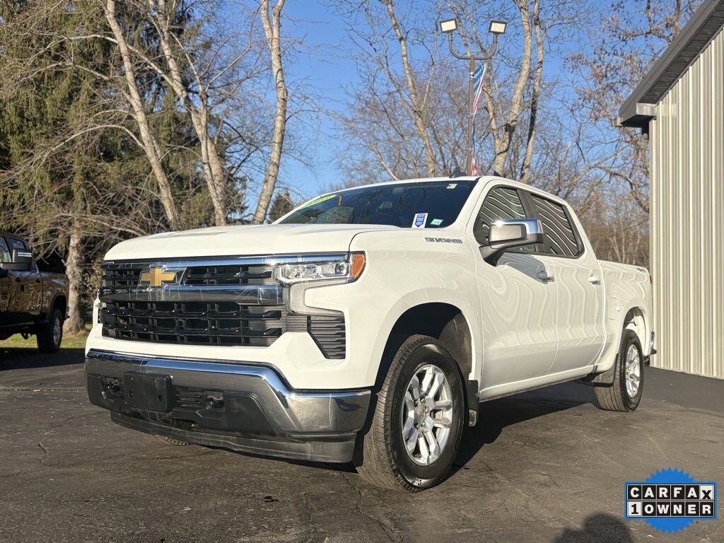 CARFAX One-Owner. Clean CARFAX. 2023 Chevrolet Silverado 1500 LT 4D Crew Cab Summit White 2.7L Turbo 8-Speed Automatic 4WD 10-Way Power Driver Seat w/Lumbar, 12.3 Multicolor Reconfigurable Digital Display, 120-Volt Bed Mounted Power Outlet, 120-Volt Instrument Panel Power Outlet, Apple CarPlay/Android Auto, Auto-Locking Rear Differential, Chevrolet Connected Access Capable, Cloth Seat Trim, Following Distance Indicator, Forward Collision Alert, Front dual zone A/C, Front Pedestrian Braking, Fully automatic headlights, HD Rear Vision Camera, Heated door mirrors, Heated front seats, Heated steering wheel, Hitch Guidance, IntelliBeam Automatic High Beam On/Off, Keyless Open & Start, Lane Keep Assist w/Lane Departure Warning, LED Cargo Area Lighting, Low tire pressure warning, Navigation System, OnStar & Chevrolet Connected Services Capable, Power door mirrors, Premium audio system: Chevrolet Infotainment 3 Premium, Rear window defroster, SiriusXM w/360L, Trailering Package, Wi-Fi Hot Spot Capable, Wireless Phone Projection. Final Price may require vehicle trade in and Paul Brown trade assistance , see website for details. For a hassle free purchase experience, reach out to the Sales team at Paul Brown Chevy at (716) 244-6077. Conveniently located on Route 16 North, Olean NY 14760. We are worth the trip! Travel from over 75 miles away and don't purchase we will supply you with $25 gas card! Paul Brown Chevy, A Dealer For the People!