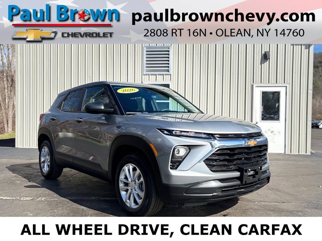 Priced below KBB Fair Purchase Price! CARFAX One-Owner. Clean CARFAX. 2026 Chevrolet TrailBlazer LS 4D Sport Utility Sterling Gray Metallic 1.3L I3 Turbocharged DOHC 12V LEV3-SULEV30 155hp 9-Speed Automatic AWD 1 Type-A and 1 Type-C USB Ports, Air Conditioning, Cloth Seat Trim, Emergency communication system: OnStar and Chevrolet connected services capable, Lane Change Alert with Side Blind Zone Alert, Low tire pressure warning, LS Confidence Package, Power door mirrors, Rear Cross Traffic Alert, Rear Park Assist, Rear window defroster, SiriusXM Trial Subscription, Wheels: 17 Silver-Painted Aluminum. 26/29 City/Highway MPG Final Price may require vehicle trade in and Paul Brown trade assistance , see website for details. For a hassle free purchase experience, reach out to the Sales team at Paul Brown Chevy at (716) 244-6077. Conveniently located on Route 16 North, Olean NY 14760. We are worth the trip! Travel from over 75 miles away and don't purchase we will supply you with $25 gas card! Paul Brown Chevy, A Dealer For the People!