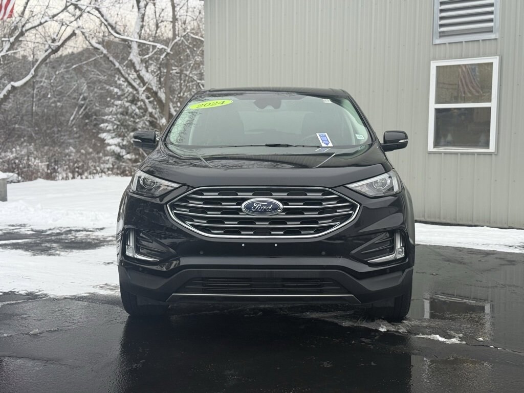 Priced below KBB Fair Purchase Price! CARFAX One-Owner. 2024 Ford Edge Titanium 4D Sport Utility Agate Black Metallic EcoBoost 2.0L I4 GTDi DOHC Turbocharged VCT 8-Speed Automatic AWD ActiveX-Trimmed Heated Sport Bucket Seats, Emergency communication system: SYNC 4 911 Assist, FordPass Connect, Front dual zone A/C, Fully automatic headlights, Heated door mirrors, Heated steering wheel, Low tire pressure warning, Power door mirrors, Power driver seat, Power Liftgate, Power passenger seat, Radio: B&O Sound System by Bang & Olufsen, Rain sensing wipers, Rear window defroster, SiriusXM w/360L, SYNC 4A w/Enhanced Voice Recognition, Wheels: 19 Luster Nickel-Painted Aluminum. 21/28 City/Highway MPG Final Price may require vehicle trade in and Paul Brown trade assistance , see website for details. For a hassle free purchase experience, reach out to the Sales team at Paul Brown Chevy at (716) 244-6077. Conveniently located on Route 16 North, Olean NY 14760. We are worth the trip! Travel from over 75 miles away and don't purchase we will supply you with $25 gas card! Paul Brown Chevy, A Dealer For the People!