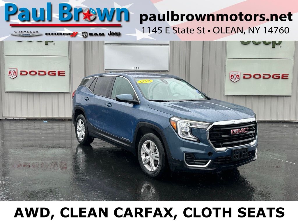 Priced below KBB Fair Purchase Price! CARFAX One-Owner. Clean CARFAX. We want your trade, ask about Paul Brown Trade discount available to all customers with a trade in! 2024 GMC Terrain SLE 4D Sport Utility Downpour Metallic 1.5L DOHC AWD 9-Speed Automatic 23/28 City/Highway MPG Balance of new car warranty., 2 USB Data Ports w/Auxiliary Input Jack, Air Conditioning, Auto High-beam Headlights, Automatic temperature control, Bluetooth® For Phone, Emergency communication system: OnStar and GMC connected services capable, Heated door mirrors, Low tire pressure warning, Power door mirrors, Power steering, Power windows, Premium Cloth Seat Trim, Rear window defroster, Remote keyless entry, SiriusXM, Speed control, Telescoping steering wheel, Tilt steering wheel, Wheels: 17" x 7" Silver Painted Aluminum, Wireless Apple CarPlay/Wireless Android Auto. For a hassle free purchase experience, reach out to the Sales team at Paul Brown Motors at (585) 376-5057. Conveniently located on Route 16 North, Olean NY 14760. We are worth the trip! Travel from over 75 miles away and don't purchase we will supply you with $25 gas card! Paul Brown Motors, A Dealer For the People!