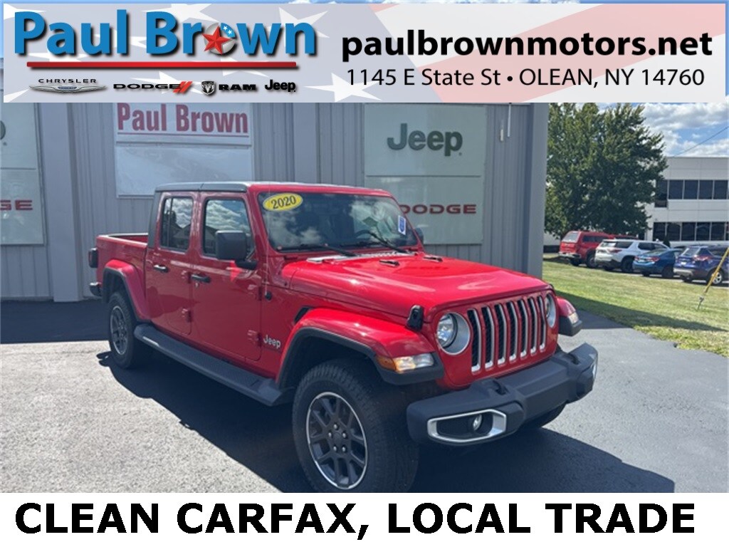 CARFAX One-Owner. Clean CARFAX. 2020 Jeep Gladiator Overland 4D Crew Cab Firecracker Red Clearcoat Odometer is 1636 miles below market average! 3.6L V6 24V VVT 4WD 8-Speed Automatic Apple CarPlay/Android Auto, Black 3-Piece Hard Top, Front dual zone A/C, Fully automatic headlights, Heated door mirrors, Integrated roll-over protection, Low tire pressure warning, ParkView Rear Back-Up Camera, Power door mirrors, Rear Sliding Window, Rear Window Defroster, Wheels: 18" x 7.5" Granite Crystal Aluminum. Final Price may require vehicle trade in and Paul Brown trade assistance , see website for details. For a hassle free purchase experience, reach out to the Sales team at Paul Brown Chevy at (716) 244-6077. Conveniently located on Route 16 North, Olean NY 14760. We are worth the trip! Travel from over 75 miles away and don't purchase we will supply you with $25 gas card! Paul Brown Chevy, A Dealer For the People! Our For The People Pricing means ZERO price increases at Paul Brown. Awards: