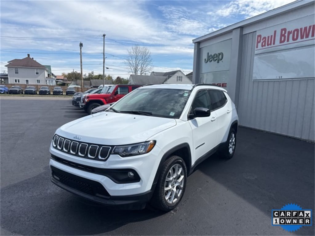 CARFAX One-Owner. Clean CARFAX. 2022 Jeep Compass Latitude Lux 4D Sport Utility Bright White Clearcoat Odometer is 11781 miles below market average! 2.4L I4 4WD 9-Speed 948TE Automatic Air Conditioning, Emergency communication system: SiriusXM Guardian, Fully automatic headlights, Heated door mirrors, Heated front seats, Heated steering wheel, Leather Trimmed Bucket Seats, Low tire pressure warning, ParkView Rear Back-Up Camera, Power door mirrors, Power driver seat, Rear window defroster, Wheels: 18" x 7.0" Painted Aluminum. 22/30 City/Highway MPG Final Price may require vehicle trade in and Paul Brown trade assistance , see website for details. For a hassle free purchase experience, reach out to the Sales team at Paul Brown Chevy at (716) 244-6077. Conveniently located on Route 16 North, Olean NY 14760. We are worth the trip! Travel from over 75 miles away and don't purchase we will supply you with $25 gas card! Paul Brown Chevy, A Dealer For the People! Our For The People Pricing means ZERO price increases at Paul Brown.