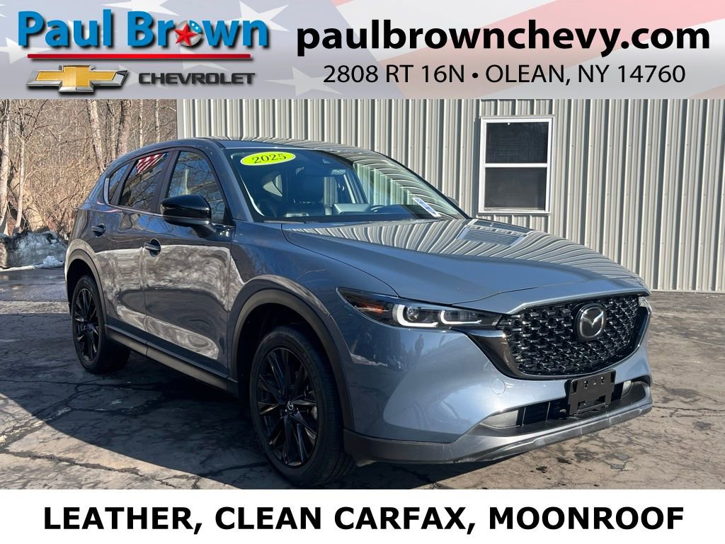Priced below KBB Fair Purchase Price! CARFAX One-Owner. Clean CARFAX. 2025 Mazda CX-5 2.5 S Carbon Edition 4D Sport Utility Polymetal Gray Metallic SKYACTIV® 2.5L 4-Cylinder DOHC 16V 6-Speed Automatic AWD 10 Speakers, AppLink/Apple CarPlay and Android Auto, E911 Automatic Emergency Notification, Emergency communication system: MAZDA CONNECT, Exterior Parking Camera Rear, Front dual zone A/C, Fully automatic headlights, Heated front seats, Leather Seat Trim, Low tire pressure warning, Pandora, Power door mirrors, Power driver seat, Power Liftgate, Power moonroof, Power passenger seat, Rain sensing wipers, Rear window defroster, SMS Text Msg Audio Delivery & Reply, Wheels: 19 x 7J Aluminum Alloy. 26/30 City/Highway MPG Final Price may require vehicle trade in and Paul Brown trade assistance , see website for details. For a hassle free purchase experience, reach out to the Sales team at Paul Brown Chevy at (716) 244-6077. Conveniently located on Route 16 North, Olean NY 14760. We are worth the trip! Travel from over 75 miles away and don't purchase we will supply you with $25 gas card! Paul Brown Chevy, A Dealer For the People!
