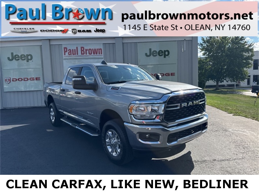 CARFAX One-Owner. Clean CARFAX. 2024 Ram 2500 Big Horn 4D Crew Cab Billet Silver Metallic Clearcoat Odometer is 8774 miles below market average! 6.4L V8 4WD 8-Speed Automatic 2nd Row In Floor Storage Bins, 40/20/40 Split Bench Seat, 4G LTE Wi-Fi Hot Spot, 8.4" Touchscreen Display, 9 Alpine Speakers w/Subwoofer, Air Conditioning, Apple CarPlay, Bed Utility Group, Emergency communication system: SiriusXM Guardian, Google Android Auto, Heated door mirrors, LED Bed Lighting, Low tire pressure warning, MOPAR Deployable Bed Step, MOPAR Spray In Bedliner, ParkView Rear Back-Up Camera, Power door mirrors. Final Price may require vehicle trade in and Paul Brown trade assistance , see website for details. For a hassle free purchase experience, reach out to the Sales team at Paul Brown Chevy at (716) 244-6077. Conveniently located on Route 16 North, Olean NY 14760. We are worth the trip! Travel from over 75 miles away and don't purchase we will supply you with $25 gas card! Paul Brown Chevy, A Dealer For the People! Our For The People Pricing means ZERO price increases at Paul Brown.