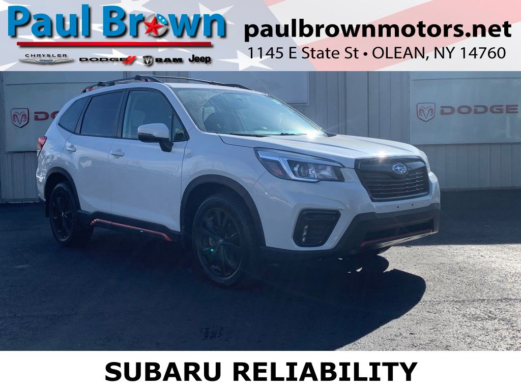 Priced below KBB Fair Purchase Price! 2019 Subaru Forester Sport 4D Sport Utility Crystal White Pearl Odometer is 30943 miles below market average! 2.5L 4-Cylinder DOHC 16V VVT AWD Lineartronic CVT Air Conditioning, Automatic temperature control, Emergency communication system: STARLINK Safety and Security, Exterior Parking Camera Rear, Fully automatic headlights, Heated door mirrors, Heated front seats, Low tire pressure warning, Paddle-Shift Control Switches, Power door mirrors, Power driver seat, Sport Cloth Upholstery, STARLINK/Apple CarPlay/Android Auto, Wheels: 18" x 7.0J Black Finish Aluminum Alloy. 26/33 City/Highway MPG Final Price may require vehicle trade in and Paul Brown trade assistance, see website for details. For a hassle free purchase experience, reach out to the Sales team at Paul Brown Motors at (585-376-5057). Conveniently located on E State Street, Olean NY 14760. We are worth the trip! Travel from over 75 miles away and don't purchase we will supply you with $25 gas card! Paul Brown Chevy, A Dealer For the People! Our For The People Pricing means ZERO price increases at Paul Brown. Awards: