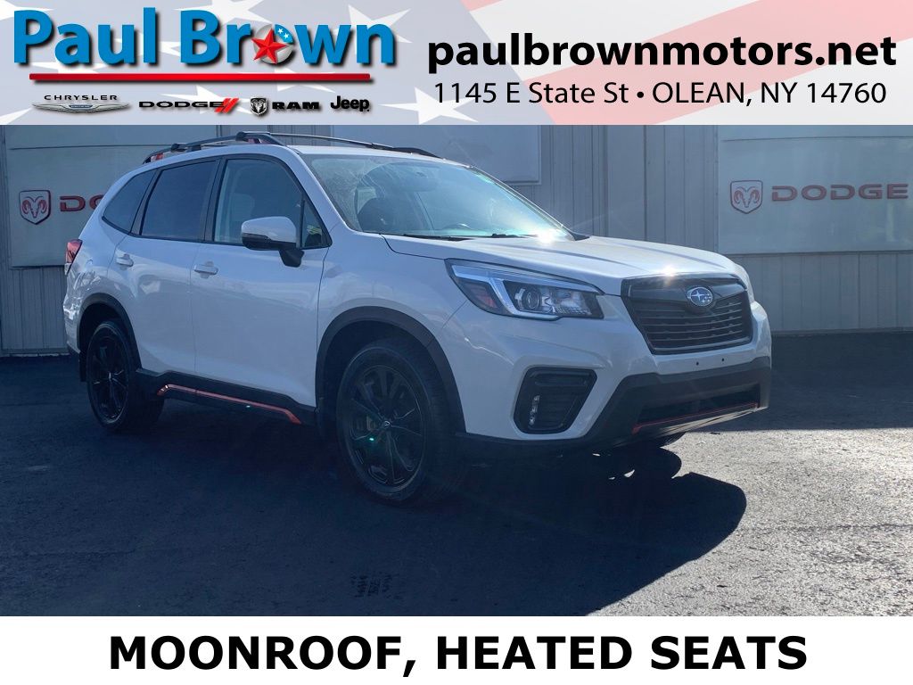 Priced below KBB Fair Purchase Price! We want your trade, ask about Paul Brown Trade discount available to all customers with a trade in! 2019 Subaru Forester Sport Odometer is 37632 miles below market average! 4D Sport Utility Crystal White Pearl 2.5L 4-Cylinder DOHC 16V VVT AWD Lineartronic CVT 26/33 City/Highway MPG Air Conditioning, Automatic temperature control, Emergency communication system: STARLINK Safety and Security, Exterior Parking Camera Rear, Fully automatic headlights, Heated door mirrors, Heated front seats, Low tire pressure warning, Paddle-Shift Control Switches, Power door mirrors, Power driver seat, Sport Cloth Upholstery, STARLINK/Apple CarPlay/Android Auto, Wheels: 18" x 7.0J Black Finish Aluminum Alloy. For a hassle free purchase experience, reach out to the Sales team at Paul Brown Motors at (585) 376-5057. Conveniently located on Route 16 North, Olean NY 14760. We are worth the trip! Travel from over 75 miles away and don't purchase we will supply you with $25 gas card! Paul Brown Motors, A Dealer For the People!