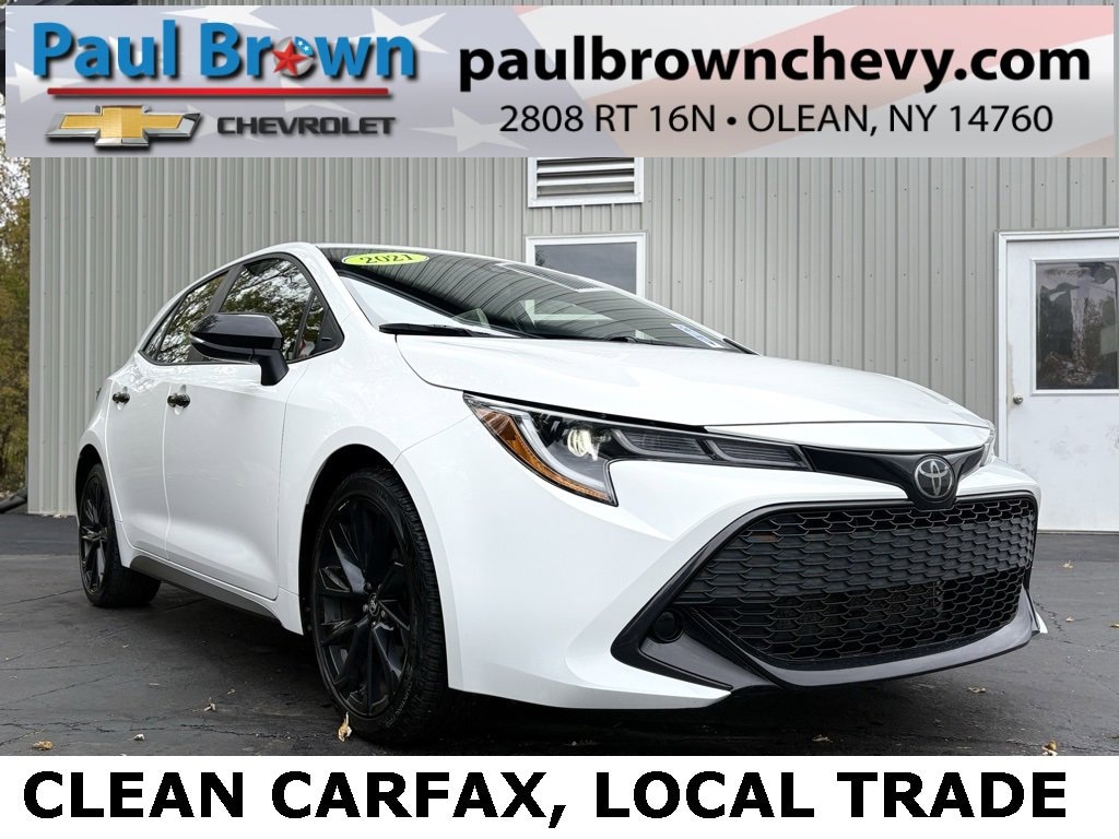 CARFAX One-Owner. Clean CARFAX. 2021 Toyota Corolla Hatchback SE 5D Hatchback Super White 2.0L I4 CVT FWD Air Conditioning, Apple CarPlay/Android Auto, Auto High-beam Headlights, Automatic temperature control, Emergency communication system: Safety Connect with 1-year trial, Exterior Parking Camera Rear, Fabric Upholstery, Heated door mirrors, Low tire pressure warning, Power door mirrors, Rear window defroster, Remote keyless entry. 32/41 City/Highway MPG Final Price may require vehicle trade in and Paul Brown trade assistance , see website for details. For a hassle free purchase experience, reach out to the Sales team at Paul Brown Chevy at (716) 244-6077. Conveniently located on Route 16 North, Olean NY 14760. We are worth the trip! Travel from over 75 miles away and don't purchase we will supply you with $25 gas card! Paul Brown Chevy, A Dealer For the People!