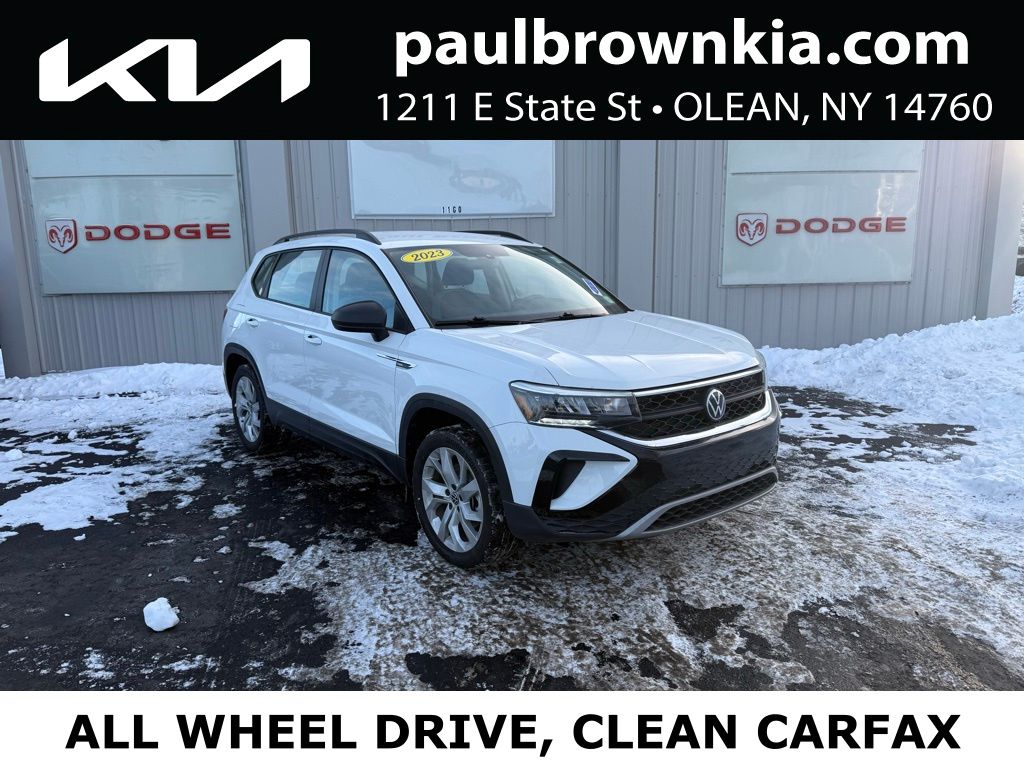 Priced below KBB Fair Purchase Price! CARFAX One-Owner. Clean CARFAX. We want your trade, ask about Paul Brown Trade discount available to all customers with a trade in! 2023 Volkswagen Taos 1.5T S Odometer is 14757 miles below market average! 4D Sport Utility Pure White 1.5L I4 Turbocharged DOHC 16V LEV3-SULEV30 158hp AWD 7-Speed DSG Automatic with Tiptronic 25/32 City/Highway MPG Balance of new car warranty., Air Conditioning, Alloy wheels, Exterior Parking Camera Rear, Heated front seats, Power windows, Remote keyless entry, Speed control. For a hassle free purchase experience, reach out to the Sales team at Paul Brown Motors at (585) 376-5057. Conveniently located on Route 16 North, Olean NY 14760. We are worth the trip! Travel from over 75 miles away and don't purchase we will supply you with $25 gas card! Paul Brown Motors, A Dealer For the People!