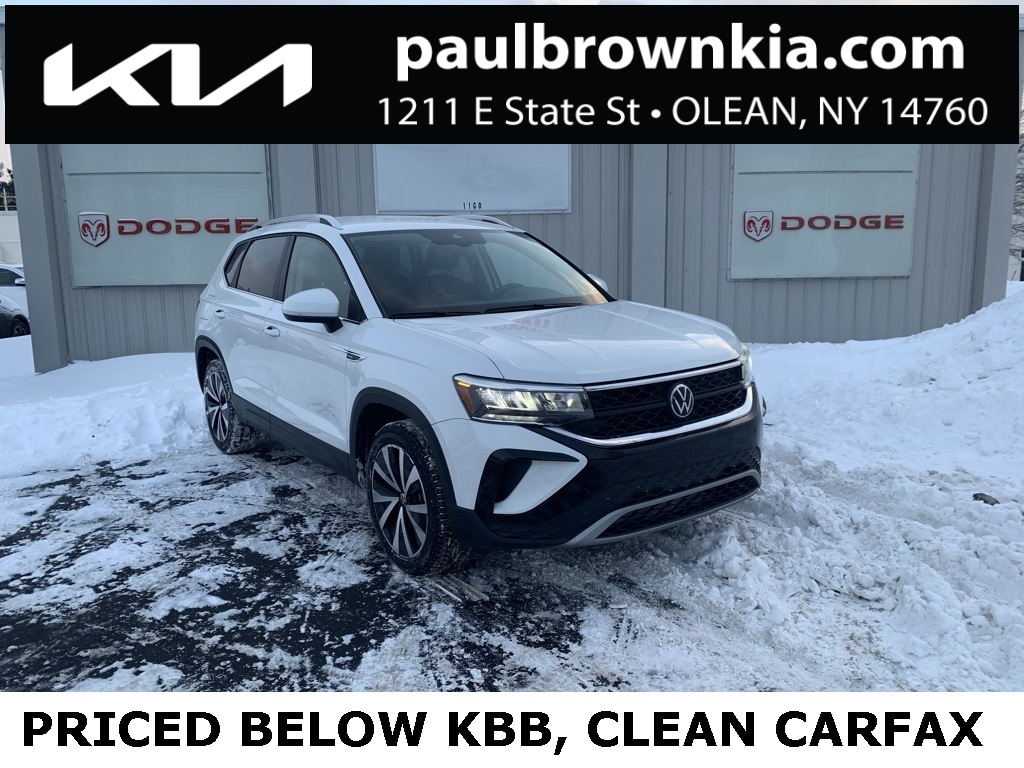 Priced below KBB Fair Purchase Price! CARFAX One-Owner. Clean CARFAX. 2024 Volkswagen Taos 1.5T SE 4D Sport Utility Pure White 1.5L I4 Turbocharged DOHC 16V LEV3-SULEV30 158hp FWD 8-Speed Automatic with Tiptronic CloudTex & Cloth Seating Surfaces, Emergency communication system: VW Car-Net Safe & Secure 5-year, Exterior Parking Camera Rear, Front dual zone A/C, Fully automatic headlights, Heated door mirrors, Heated front seats, Heated steering wheel, Low tire pressure warning, Power door mirrors, Power driver seat, Power windows, Rain sensing wipers, Rear window defroster, Remote keyless entry, Speed control, Wheels: 18" 2-Tone Machined Alloy. 28/36 City/Highway MPG Final Price may require vehicle trade in and Paul Brown trade assistance, see website for details. For a hassle free purchase experience, reach out to the Sales team at Paul Brown Motors at (585-376-5057). Conveniently located on E State Street, Olean NY 14760. We are worth the trip! Travel from over 75 miles away and don't purchase we will supply you with $25 gas card! Paul Brown Chevy, A Dealer For the People! Our For The People Pricing means ZERO price increases at Paul Brown.
